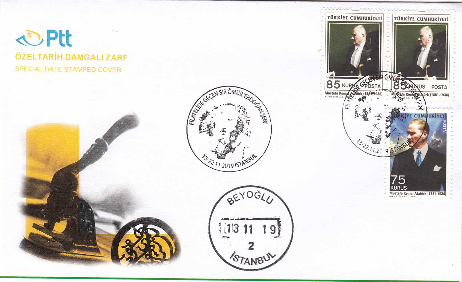 13.11.2019 FİLATELİDE GEÇEN BİR ÖMÜR ERDOĞAN ŞEN BEYOĞLU İLK GÜN POSTA DAMGALI