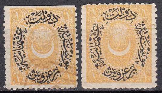 1876 AYYILDIZLI DULOZ 1 KURUŞ TURUNCU SARI POSTA PULU VI. TİP DAMGALI - DAMGASIZ ZAMKLI ŞARNİYERLİ 2 TAM SERİ