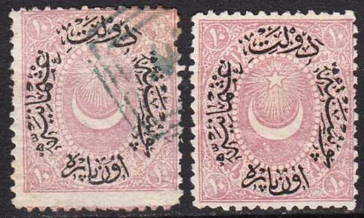 1876 AYYILDIZLI DULOZ 10 PARA LEYLAKİ PEMBE POSTA PULU VI. TİP DAMGALI - DAMGASIZ GOMSUZ 2 TAM SERİ