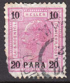 1900 AVUSTURYA POSTASI TÜRK İMPARATORLUĞU SÜRŞARJLI PULLAR 20 PARA EK ÜCRETLİ DAMGALI HALİYLE