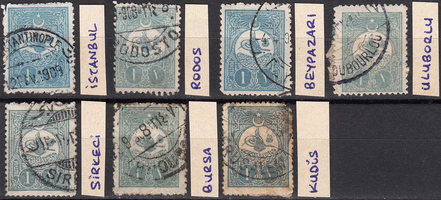 1908 SULTAN ABDÜLHAMİD TUĞRALI 1 KURUŞ DAMGA ÖRNEKLERİ