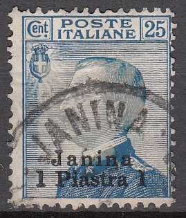 1909 İTALYAN POSTASI TÜRK İMPARATORLUĞU 1 KURUŞ JANİNA SÜRŞARJLI JANİNA DAMGALI