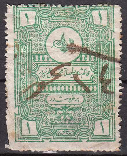 1910 OSMANLI MUHAKİM-İ ŞERİYE SULTAN REŞAD TUĞRALI FİSKAL PULLARI 1K DAMGALI (KENARDA YIRTIK VAR) HALİYLE