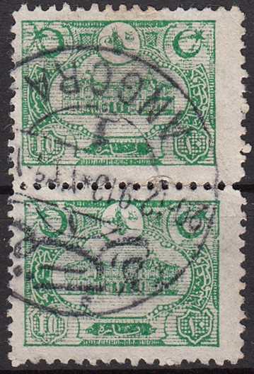 1913 YENİ POSTAHANE RESİMLİ SULTAN REŞAD TUĞRALI PULLAR 1K "ANKARA" DAMGALI İKİLİ PER