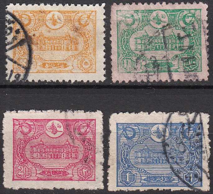 1913 YENİ POSTAHANE RESİMLİ SULTAN REŞAD TUĞRALI VE AYYILDIZLI PULLAR DAMGALI 4 ÇEŞİT PUL