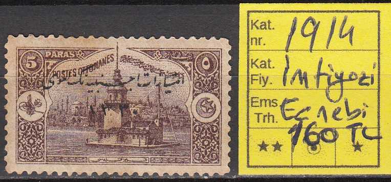 1914 İMTİYAZAT-I ECNEBİYENİN LAĞVI SÜRŞARJLI 5P DAMGASIZ ZAMK SARI KATALOG: 75 TL