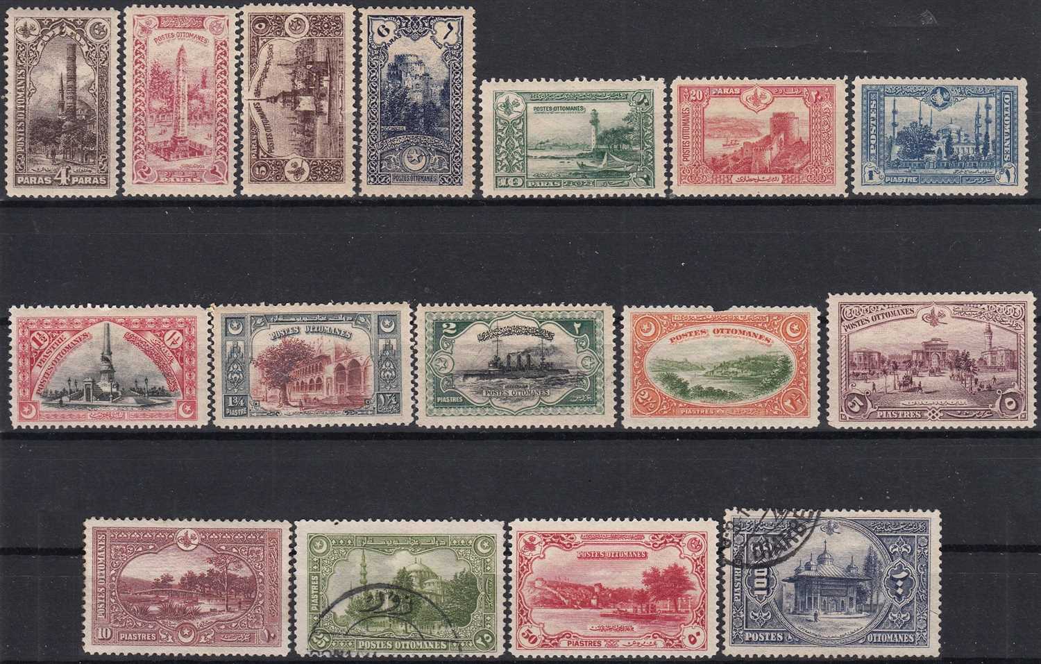 1914 LONDRA BASKISI İSTANBUL MANZARALI POSTA PULLARI DAMGALI - DAMGASIZ (SERİDEN 1 PUL 200K EKSİK, 100K KESİK) KATALOG: 3.000 TL