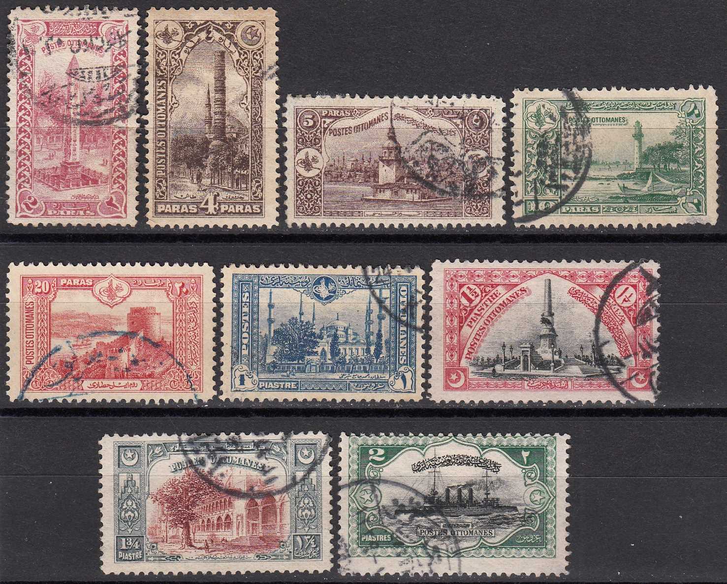 1914 LONDRA BASKISI İSTANBUL MANZARALI POSTA PULLARI DAMGALI PARÇA PULLAR