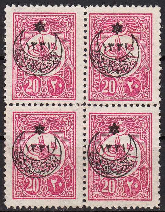 1915 (1910) POSTA PULLARI ÜZERİNE AY VE ALTI KÖŞELİ YILDIZ SÜRŞARJLI POSTA PULLARI 20P DBL MNH KATALOG: 300 TL