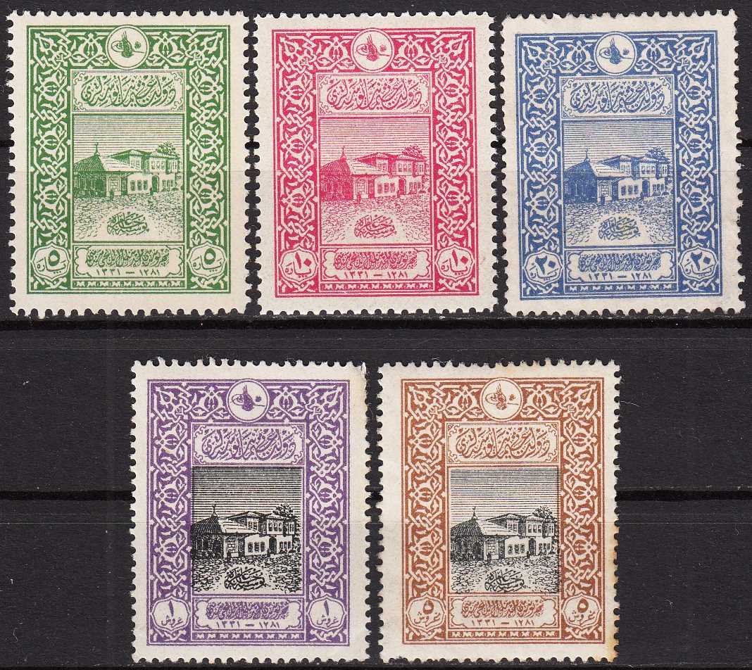 1916 ŞEHİR POSTASININ 50. YILI HATIRA PULLARI DAMGASIZ ZAMKLI ŞARNİYERLİ TAM SERİ KATALOG: 1.800 TL