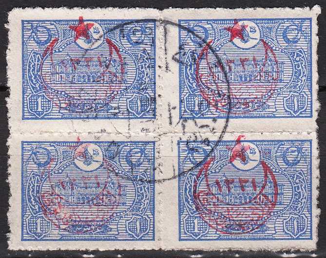 1916 SÜRŞARJLI HARP EMİSYONU PULLARI (1913) POSTAHANE RESİMLİ PUL 1 KURUŞ GÖBEK DAMGALI DBL KATALOG: 250 TL