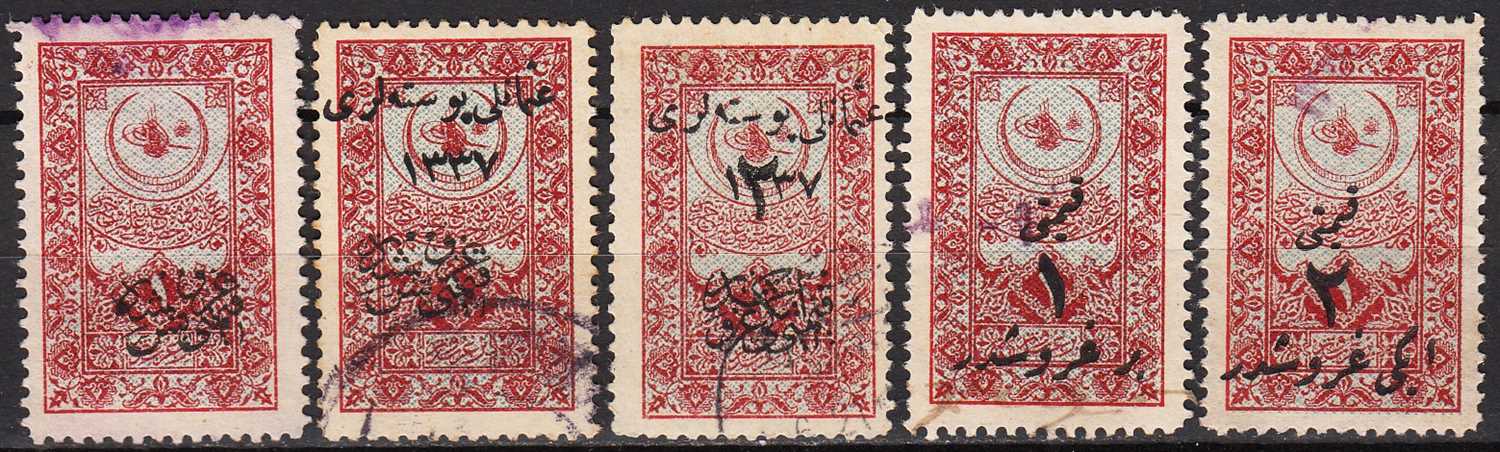 1918 HİCAZ DEMİRYOLU 5 ÇEŞİT DAMGALI PARÇA PULLAR