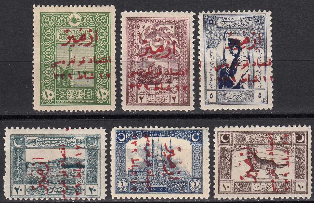 1923 İZMİR İKTİSAT KONGRESİ SÜRŞARJLI HATIRA SERİSİ DAMGASIZ ZAMKLI (10P, 1K, 5K ŞARNİYERLİ - 20P, 2K, 10K ŞARNİYERSİZ) KATALOG: 15.500 TL