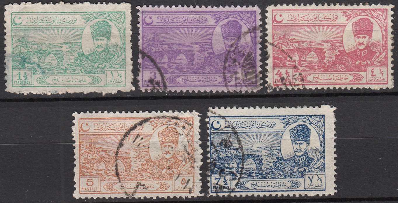 1924 LOZAN SULH ANTLAŞMASI HATIRA PULLARI (İLK ATATÜRK RESİMLİ PULLAR) DAMGALI 5 ÇEŞİT KATALOG: 420 TL
