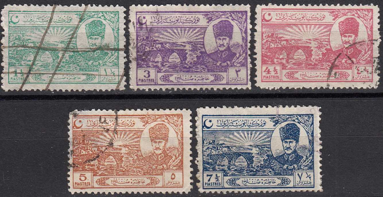 1924 LOZAN SULH ANTLAŞMASI HATIRA PULLARI (İLK ATATÜRK RESİMLİ PULLAR) DAMGALI 5 ÇEŞİT KATALOG: 420 TL