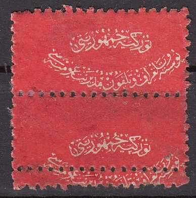 1925 TÜRKİYE CUMHURİYETİ POSTA, TELGRAF VE TELEFON MÜDÜRİYETİ TELGRAF ETİKETİ İKİLİ PER
