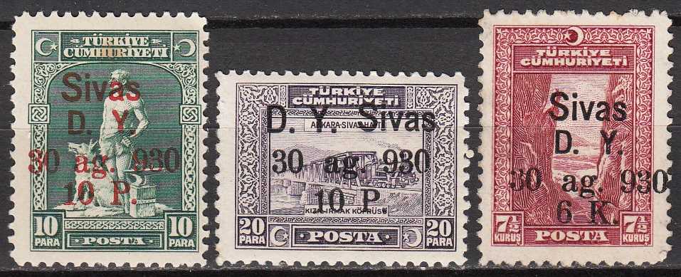 1930 ANKARA - SİVAS DEMİRYOLU HATTININ AÇILIŞI DAMGASIZ PARÇA PULLAR (30K GOMSUZ) KATALOG: 280 TL