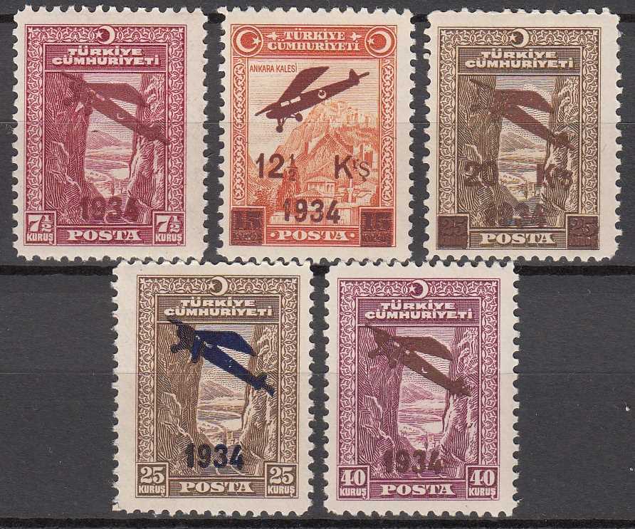 1934 SÜRŞARJLI BİRİNCİ UÇAK PULLARI TAM SERİ MNH KATALOG: 600 TL