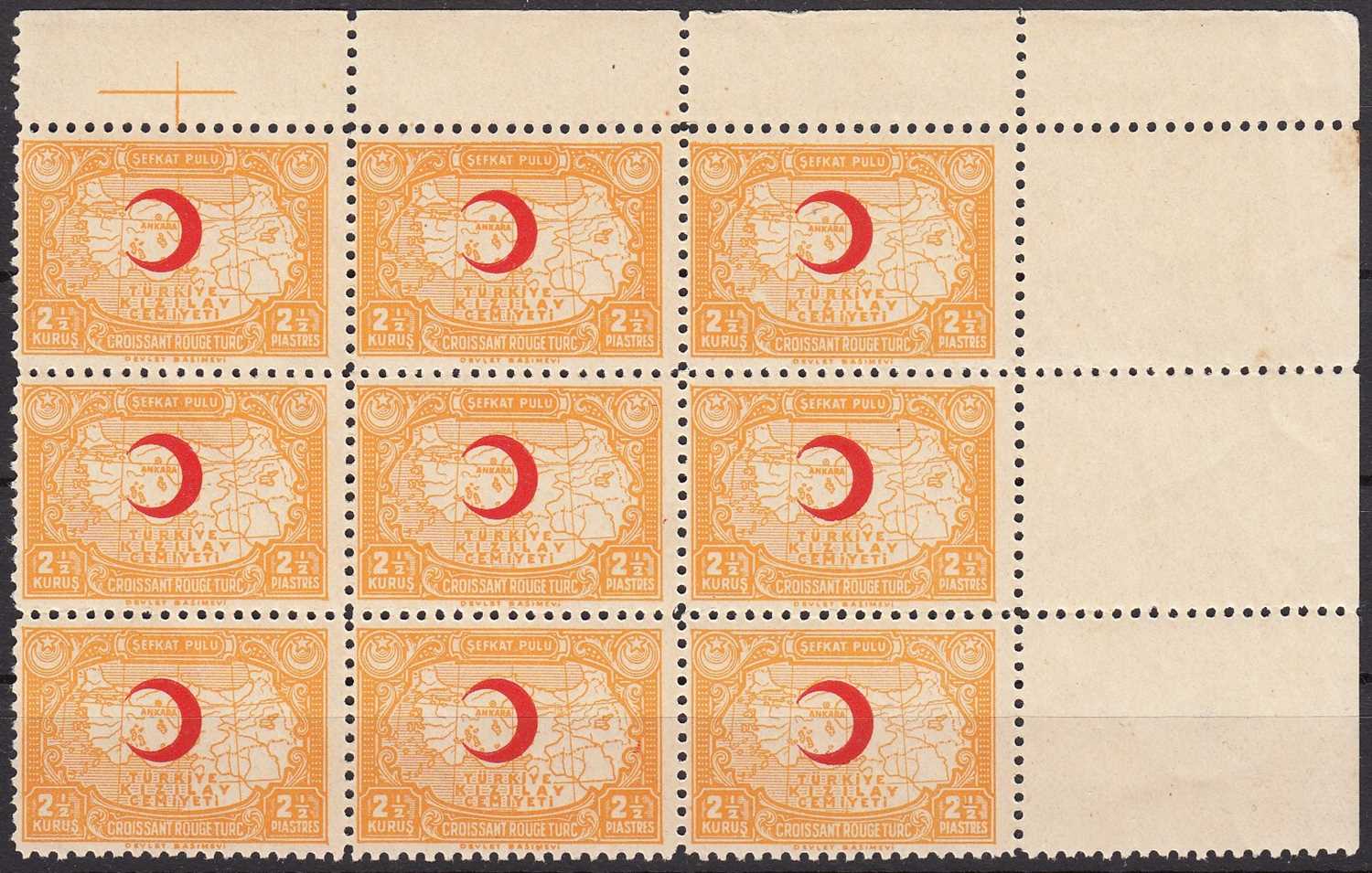 1937 - 1938 TÜRKİYE KIZILAY CEMİYETİ ŞEFKAT PULLARI 2.5 KURUŞ K45 9 LU BLOK MNH KATALOG: 1.550 TL