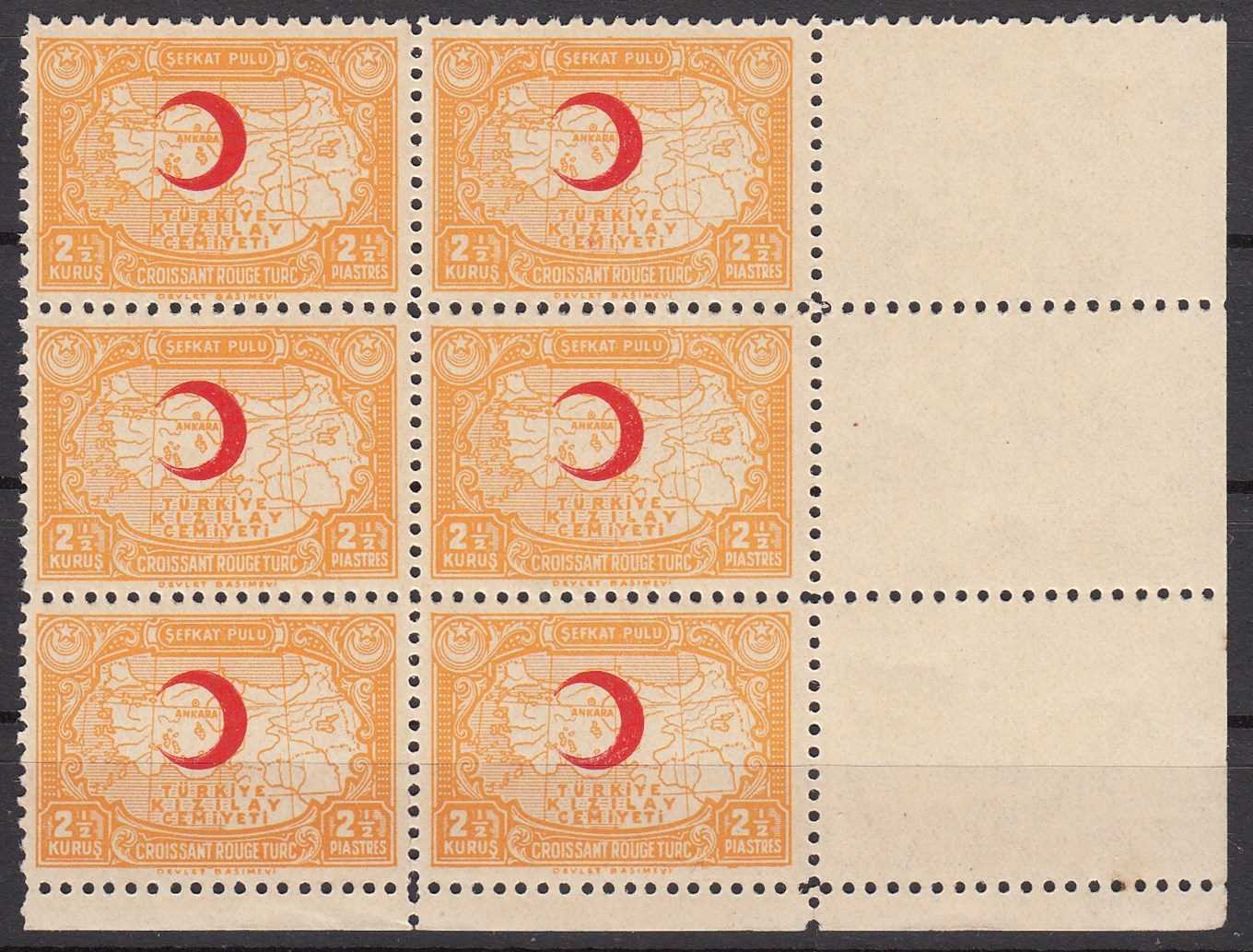 1937 - 1938 TÜRKİYE KIZILAY CEMİYETİ ŞEFKAT PULLARI K45 6 LI BLOK MNH KATALOG: 1.110 TL
