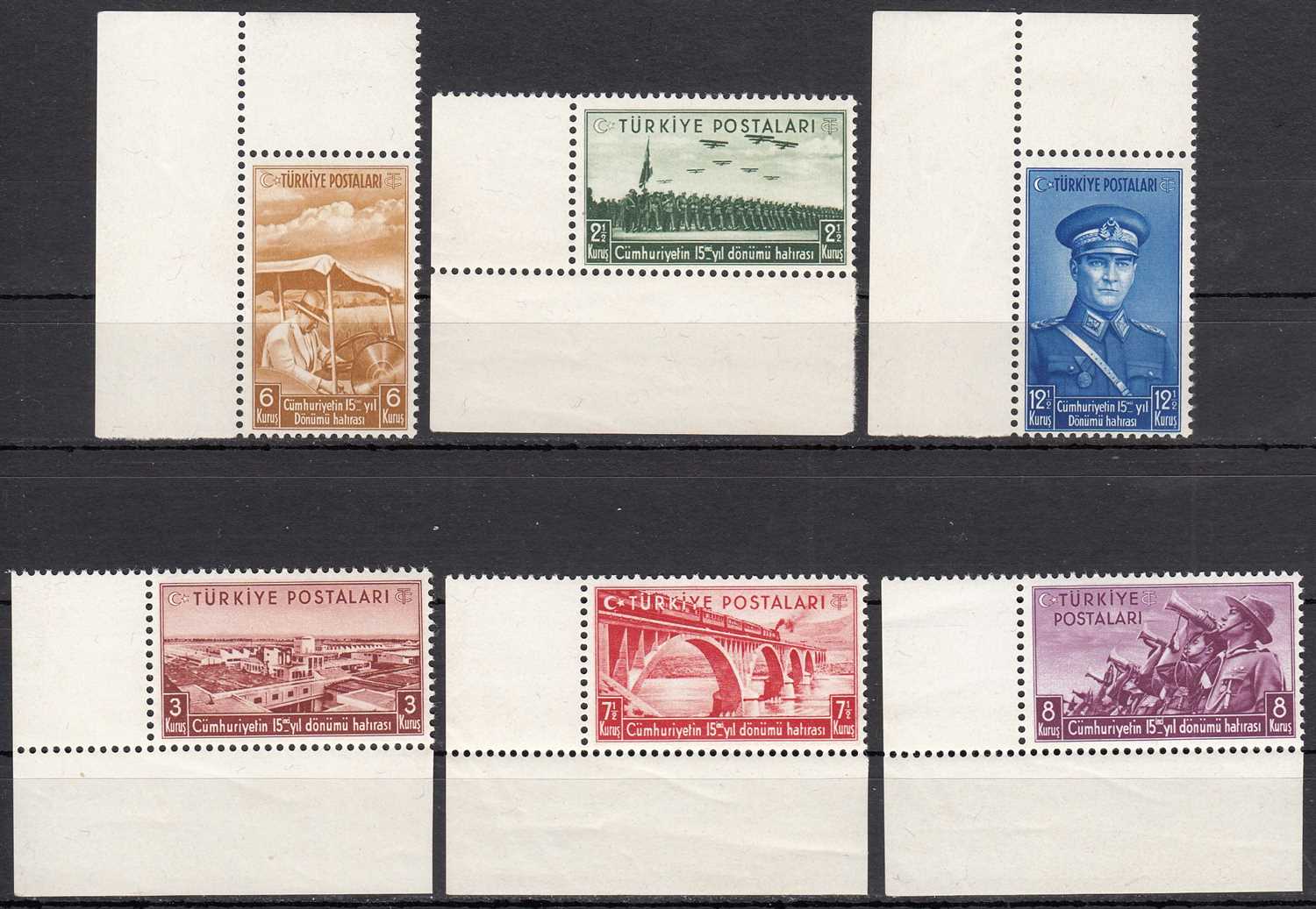 1938 CUMHURİYET İN ONBEŞİNCİ YILDÖNÜMÜ KÖŞE PULLAR TAM SERİ MNH KATALOG: 1.100 TL