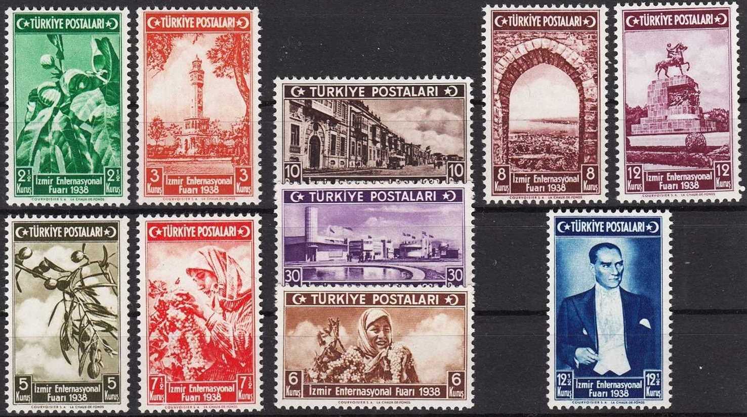 1938 İZMİR ENTERNASYONAL FUARI DAMGASIZ GOMSUZ TAM SERİ