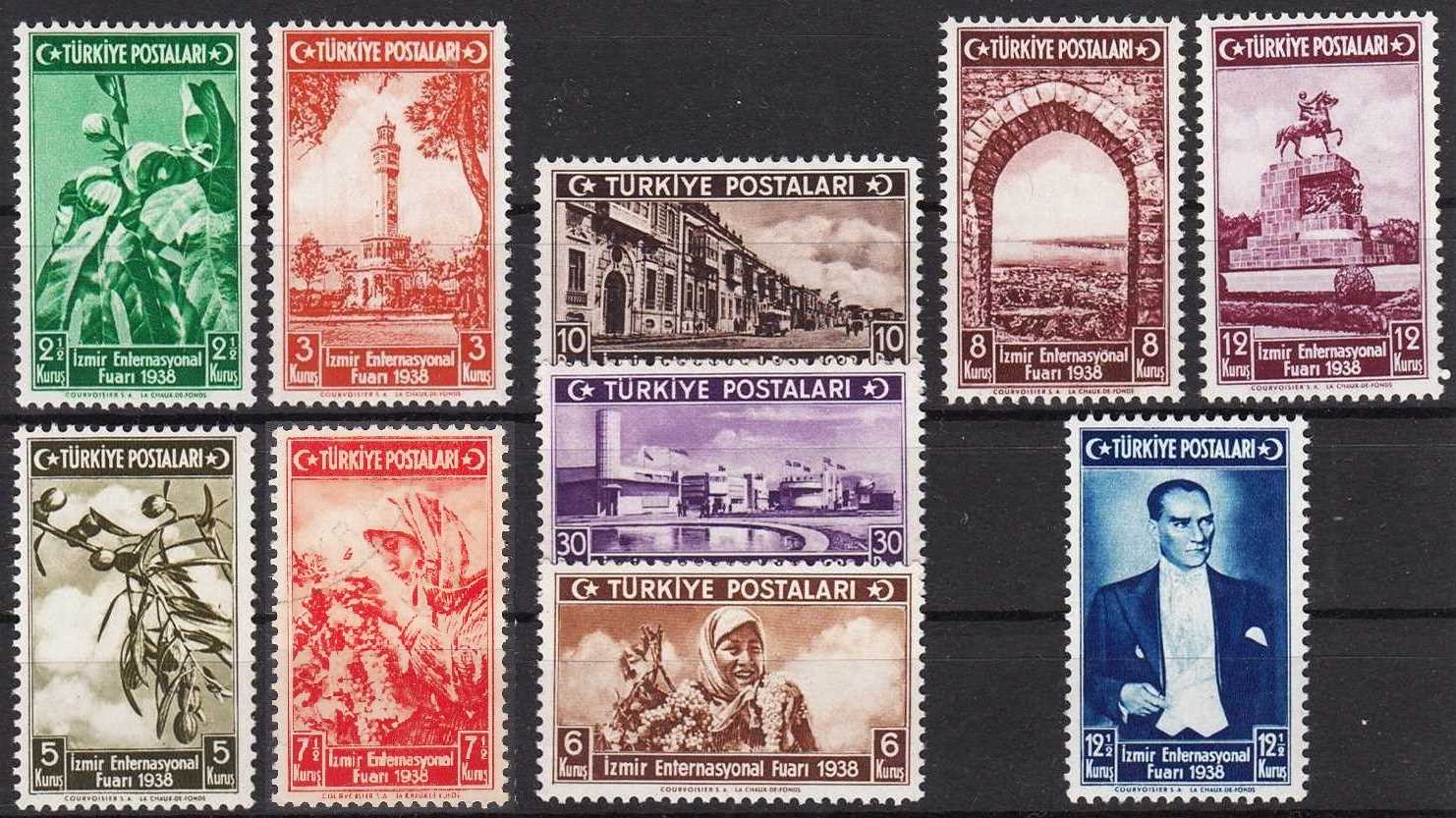 1938 İZMİR ENTERNASYONAL FUARI TAM SERİ DAMGASIZ GOMSUZ (7.5K DAMGALI)