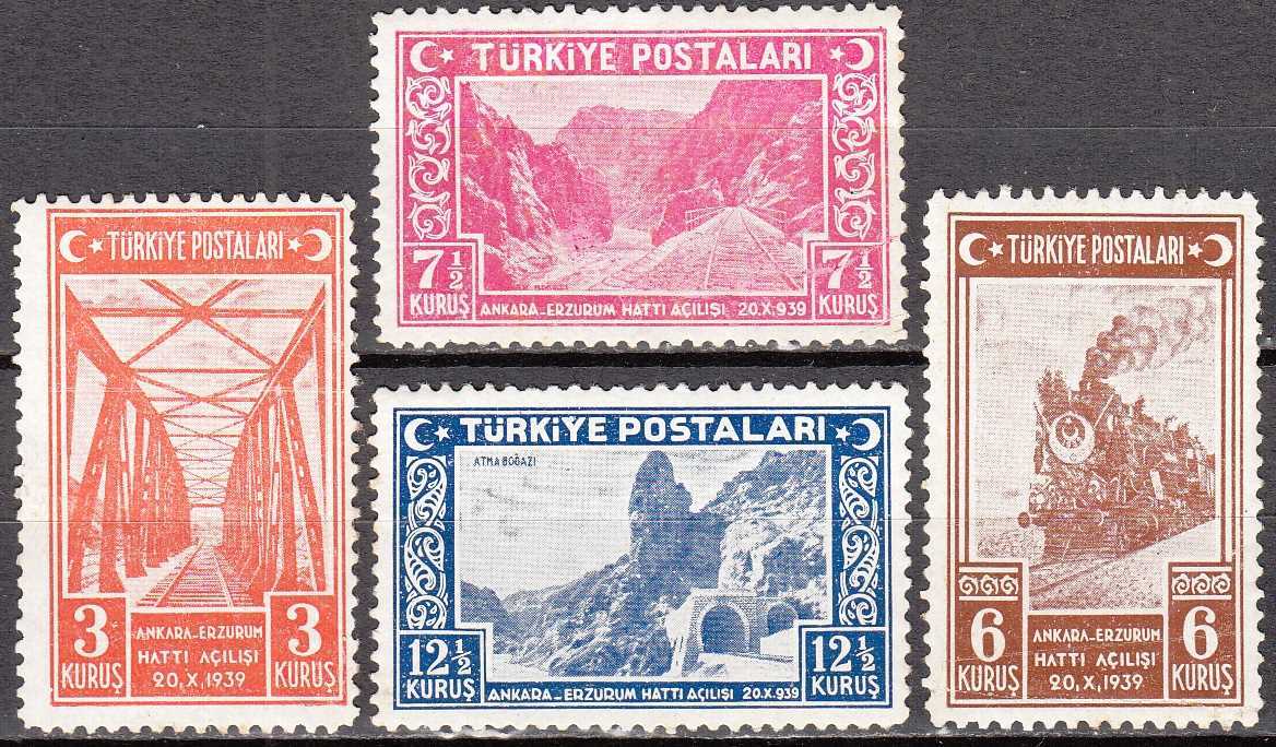 1939 ANKARA - ERZURUM HATTI AÇILIŞI DAMGASIZ ZAMKLI ŞARNİYERLİ TAM SERİ KATALOG: 1.150 TL