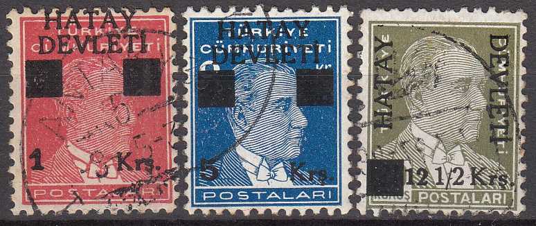 1939 TC ATATÜRK POSTA PULLARI ÜZERİNE HATAY DEVLETİ SÜRŞARJLI POSTA PULLARI (BİRİNCİ SERİ) DAMGALI PARÇA PULLAR KATALOG: 135 TL