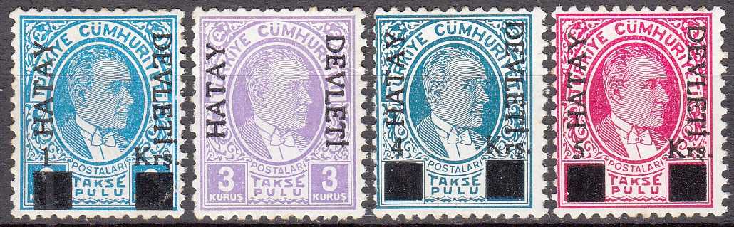 1939 TC ATATÜRK TAKSE PULLARI ÜZERİNE HATAY DEVLETİ SÜRŞARJLI TAKSE PULLARI (BİRİNCİ SERİ) DAMGASIZ ZAMK SARI TAM SERİ KATALOG: 300 TL