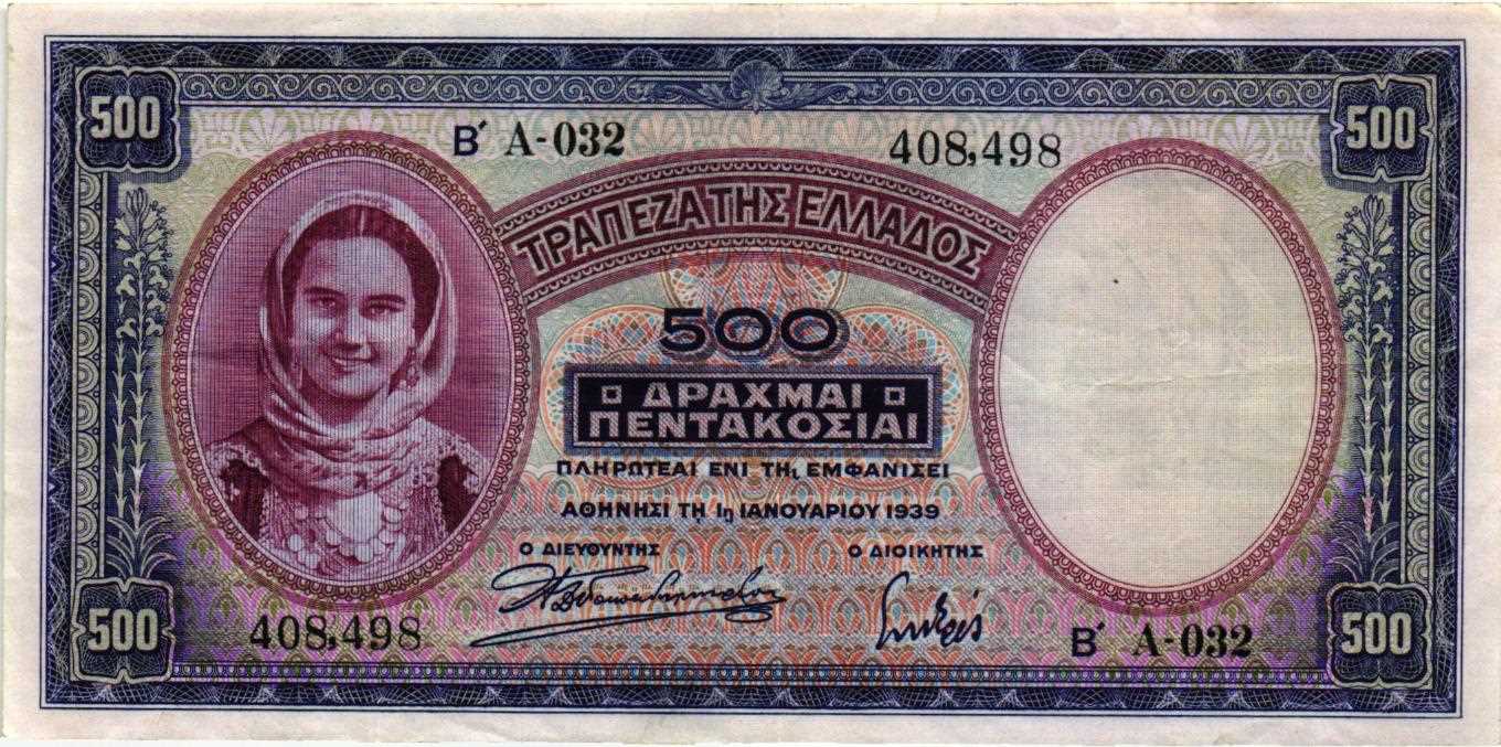 1939 YUNANİSTAN 500 DRAHMİ ÇT+