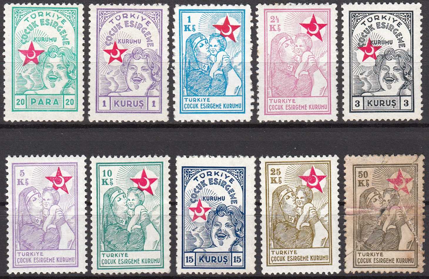 1940 ÇOCUK ESİRGEME KURUMU ŞEFKAT PULLARI DAMGASIZ ZAMKLI ŞARNİYERLİ TAM SERİ
