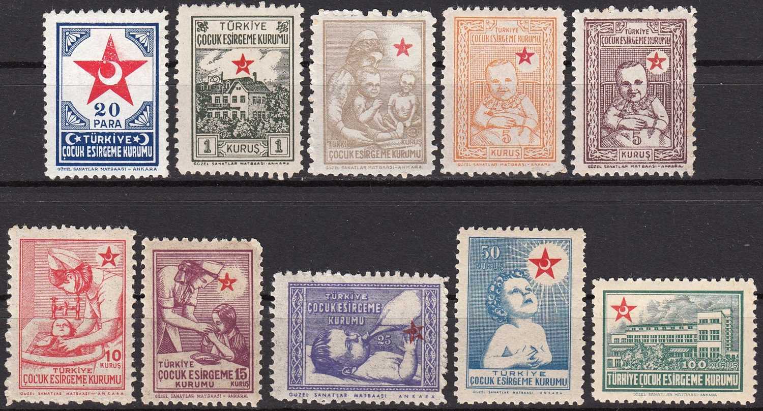 1943 - 1944 TÜRKİYE ÇOCUK ESİRGEME KURUMU ÇOCUK SARAYI PULLARI TAM SERİ MNH KATALOG: 2.750 TL