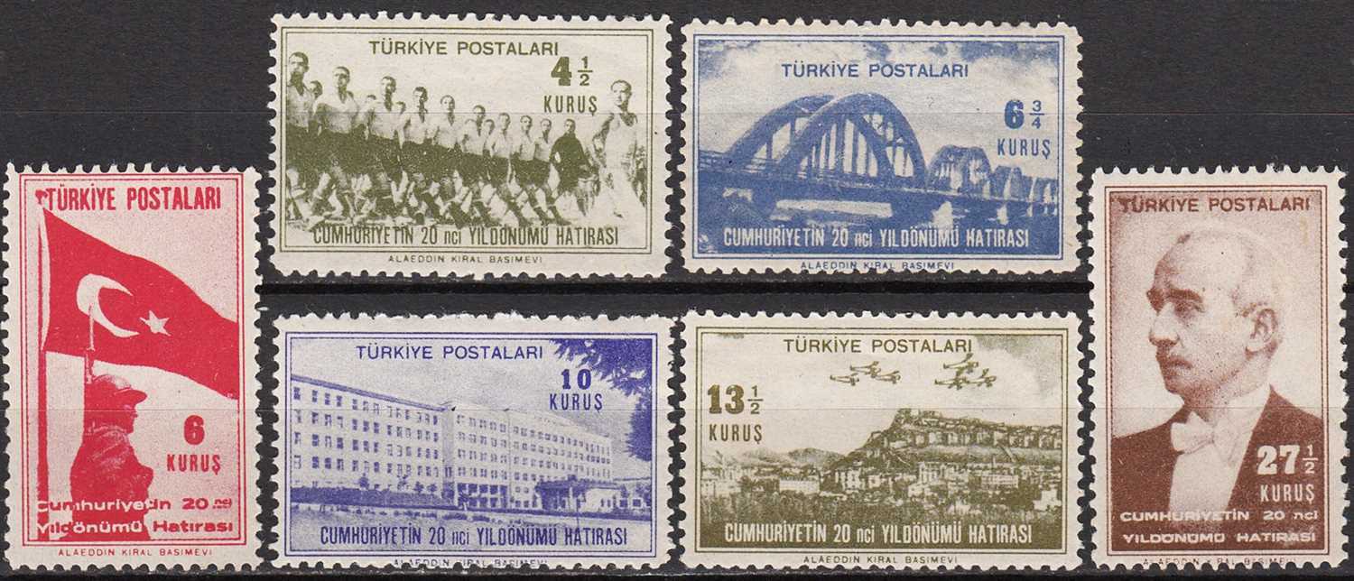 1943 CUMHURİYET İN YİRMİNCİ YILDÖNÜMÜ TAM SERİ MNH KATALOG: 215 TL