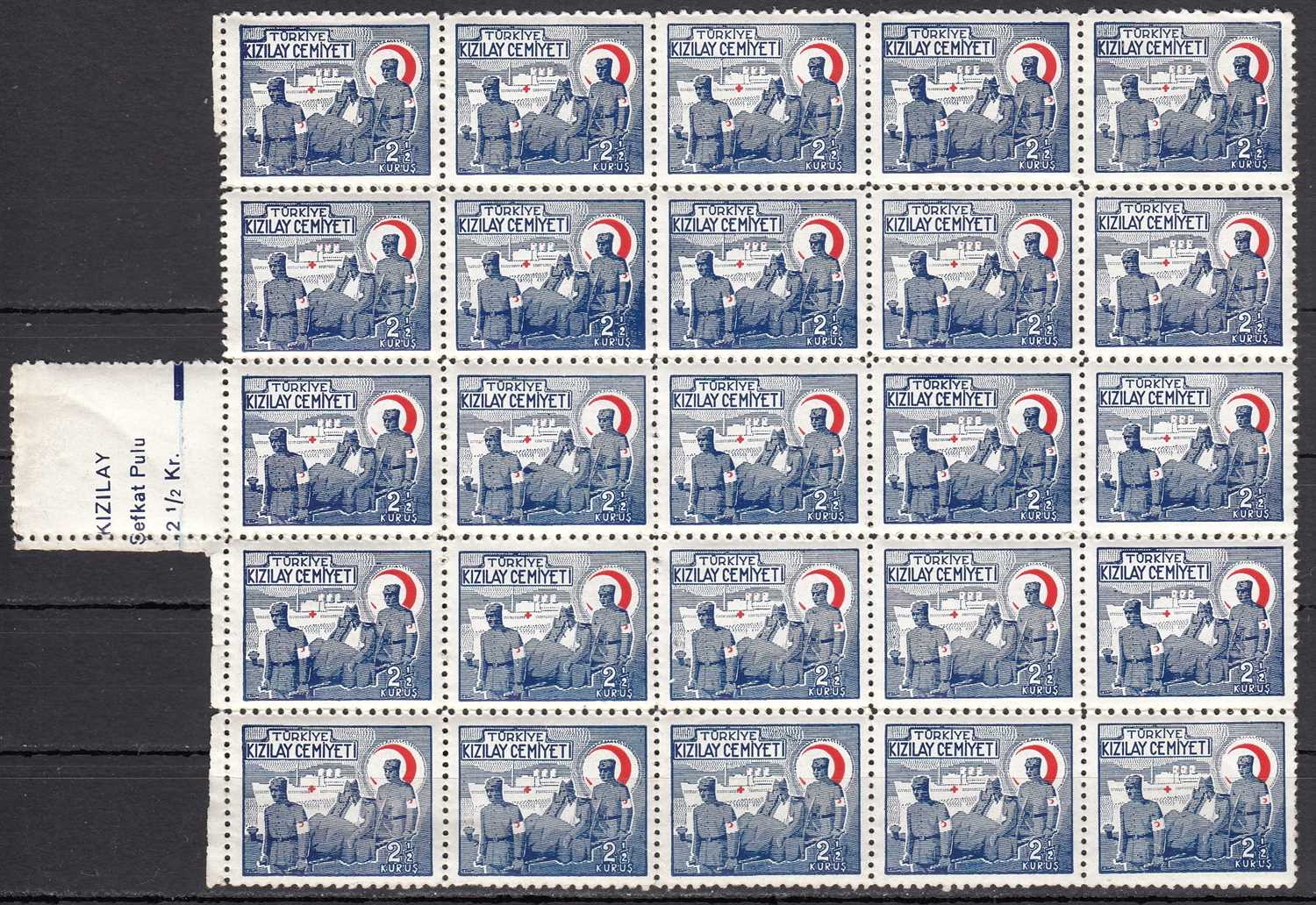 1944 - 1945 TÜRKİYE KIZILAY CEMİYETİ YARDIM PULLARI KIZILAY IN BAŞARILARI 2.5 KURUŞ K64 25 Lİ TAM TABAKA MNH