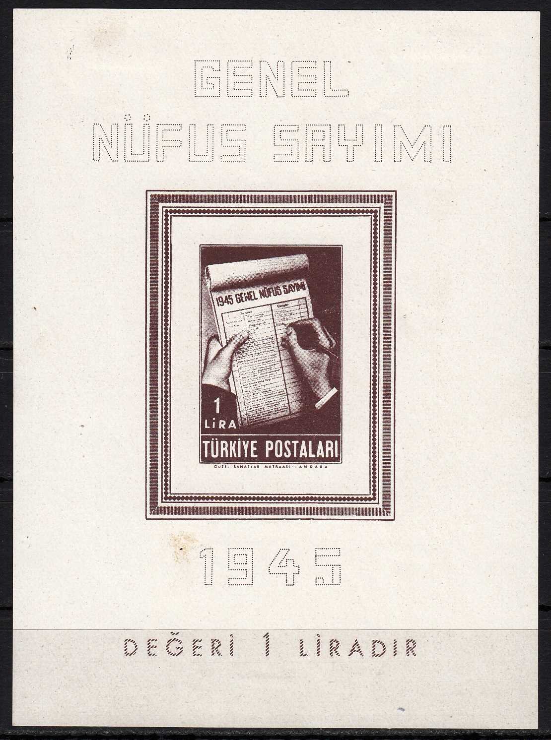 1945 NÜFUS SAYIMI HATIRA BLOKU DAMGASIZ ZAMKLI ŞARNİYERLİ KATALOG: 2.000 TL