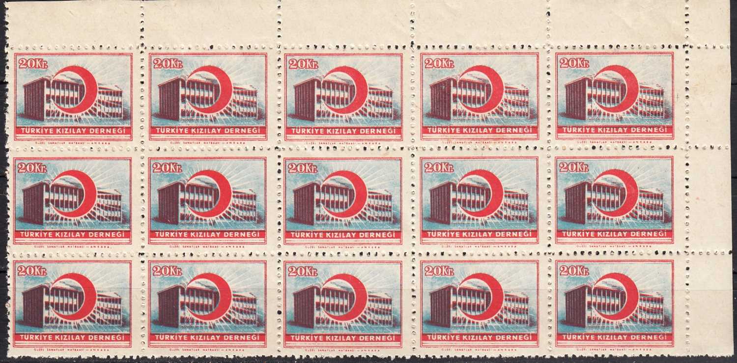 1946 TÜRKİYE KIZILAY DERNEĞİ PULLARI KIZILAY'IN BAŞARILARI 20 KURUŞ K81 15 Lİ BLOK MNH
