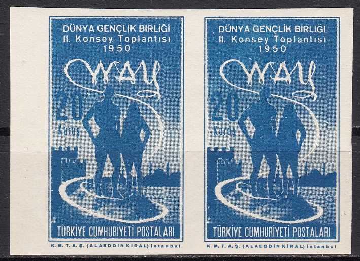 1950 DÜNYA GENÇLİK BİRLİĞİ (WAY) II. KONSEY TOPLANTISI 20 KURUŞ DANTELSİZ İKİLİ PER ERÖR MNH