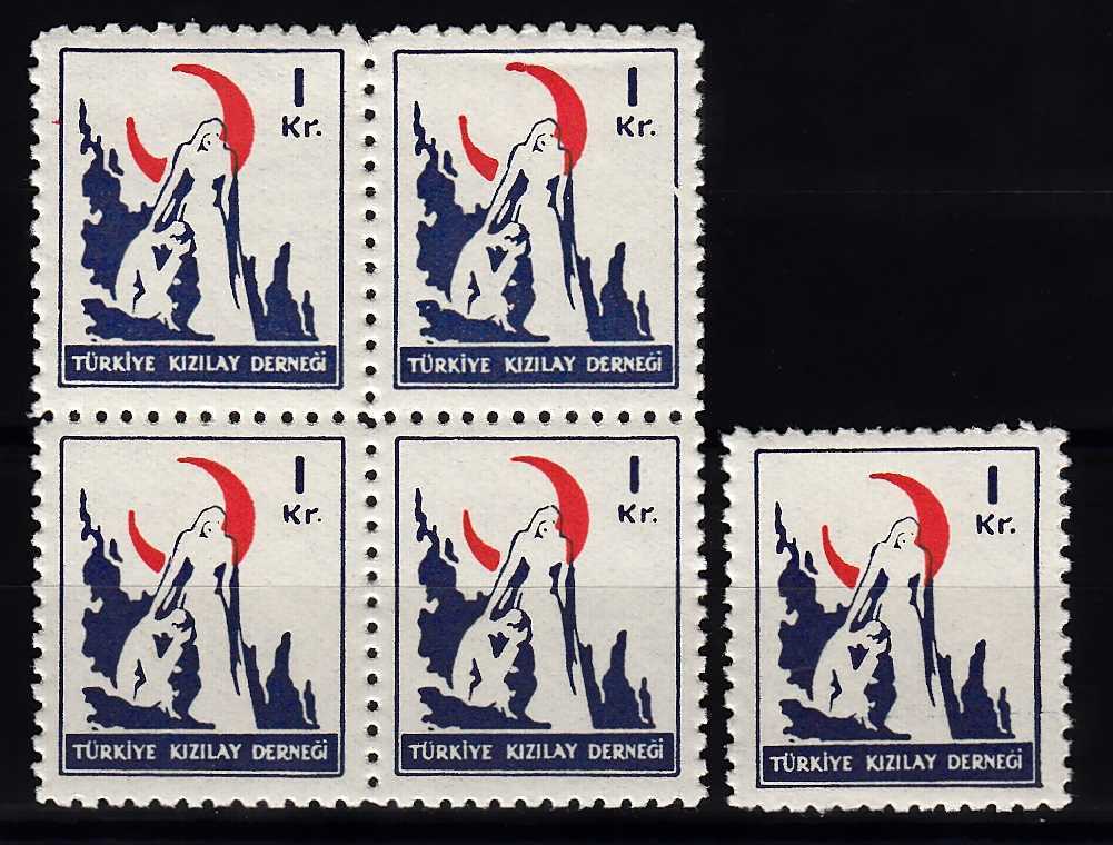 1950 KIZILAY 1 KURUŞ DBL VE TEK PARÇA PUL MNH