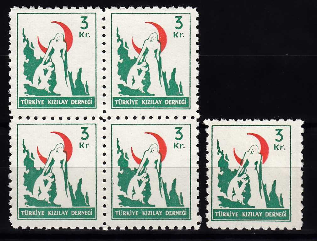 1950 KIZILAY 3 KURUŞ DBL VE TEK PARÇA PUL MNH