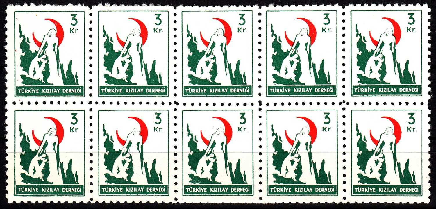 1950 KIZILAY DERNEĞİ PULLARI 3 KURUŞ K97 10 LU BLOK MNH