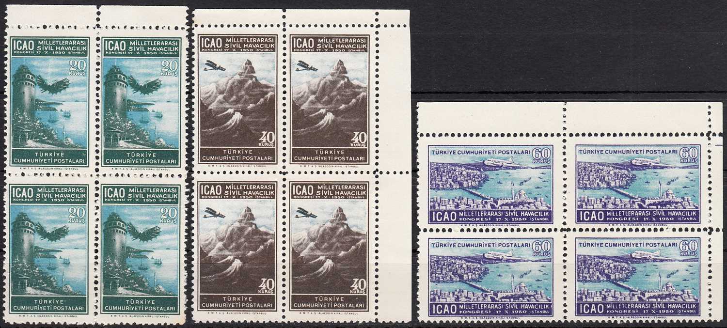 1950 MİLLETLERARASI SİVİL HAVACILIK TEŞKİLATI (ICAO) BÖLGE KONGRESİ TAM SERİ DBL (20, 40 1 ER PUL SARI) MNH KATALOG: 240 TL