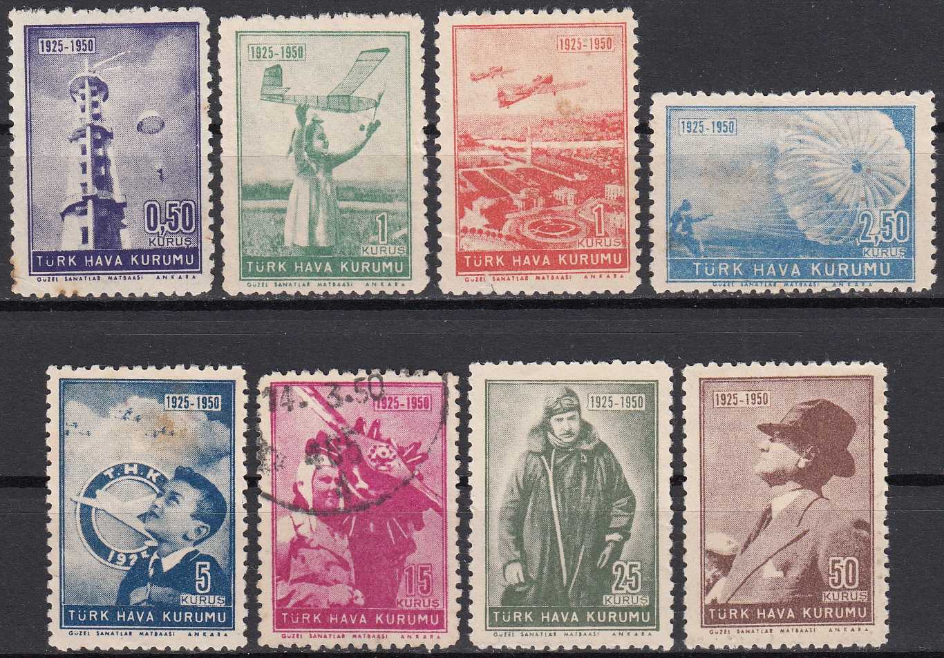 1950 TÜRK HAVA KURUMU 25. YILDÖNÜMÜ DAMGALI - DAMGASIZ HALİYLE TAM SERİ