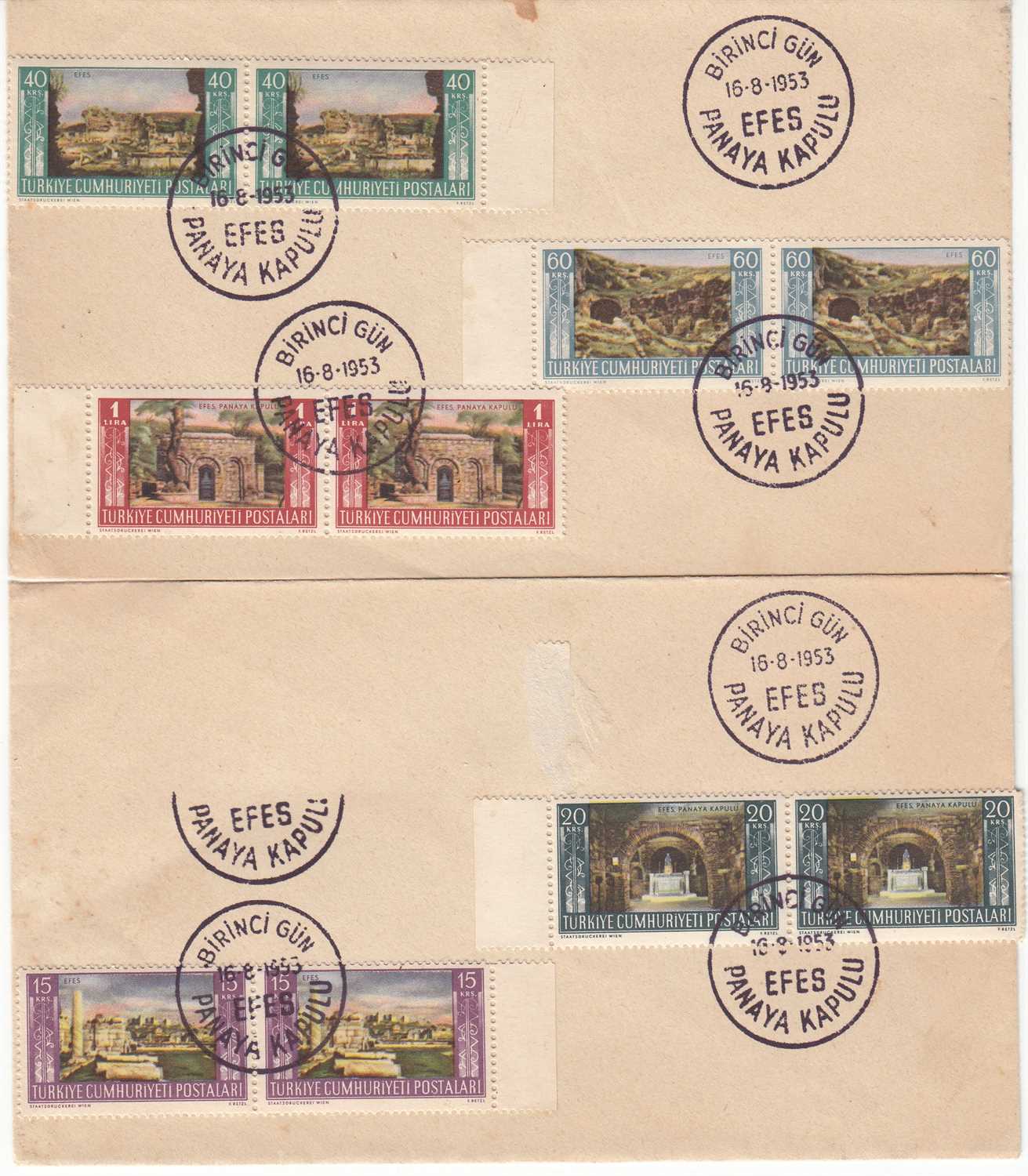1953 EFES TURİSTİK FDC - BİR ZARFTA PUL EKSİK HALİYLE