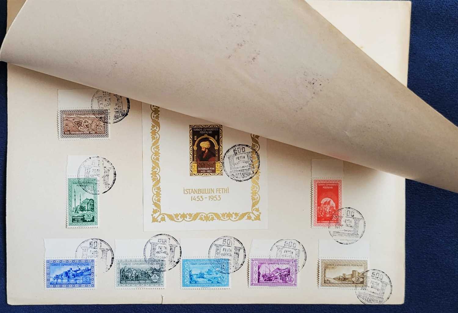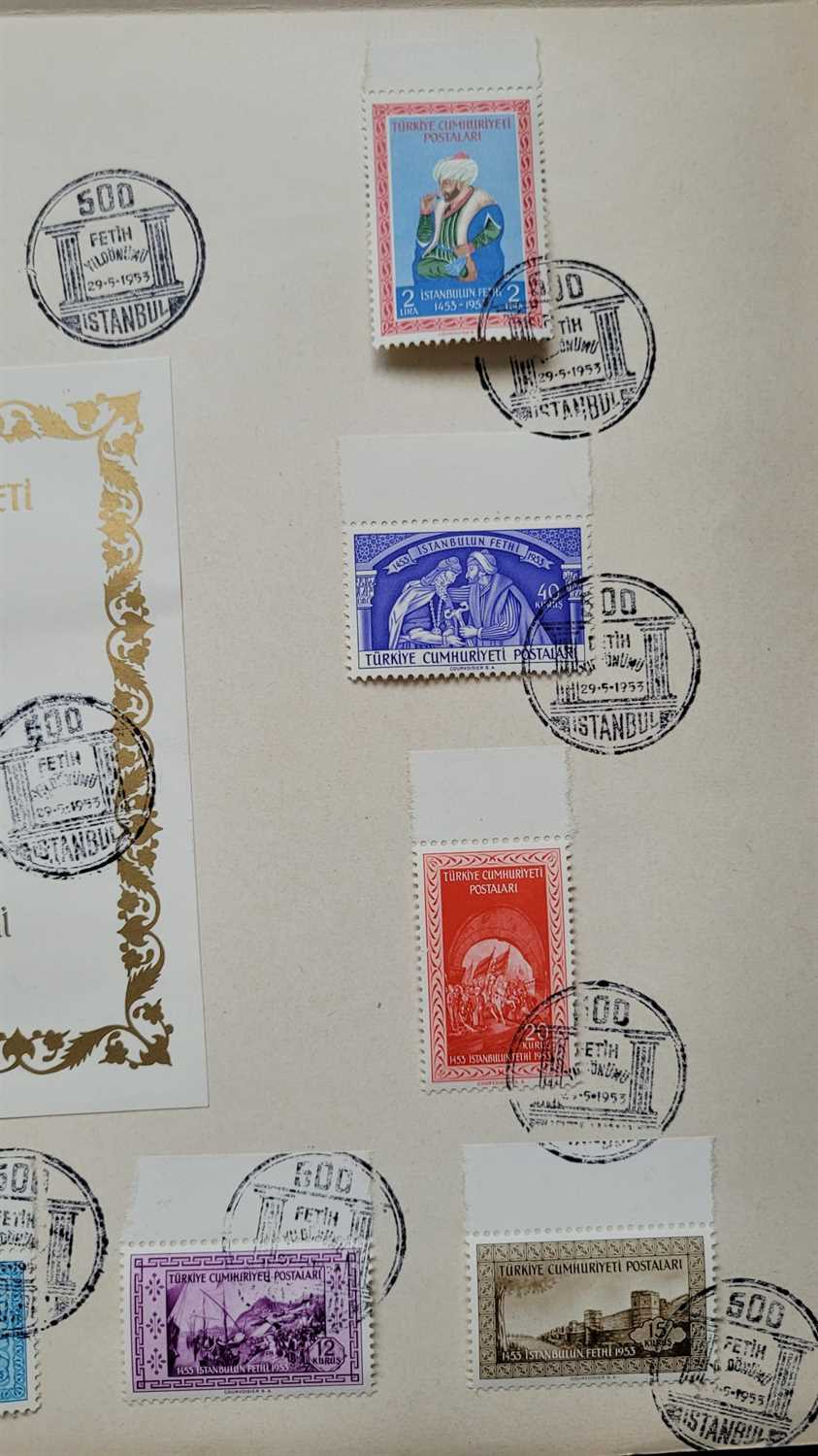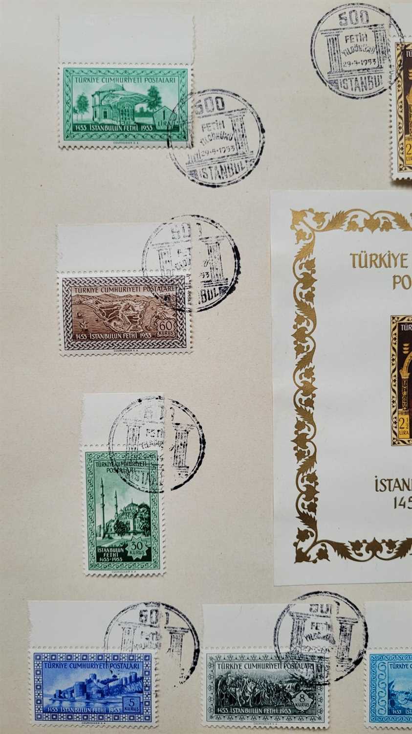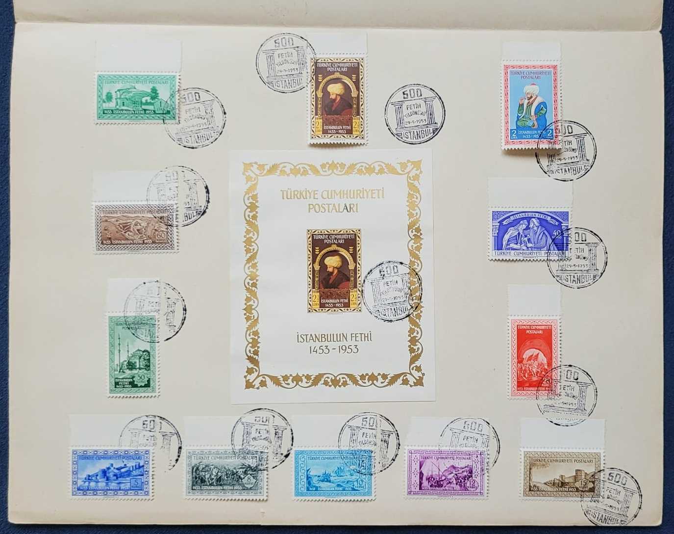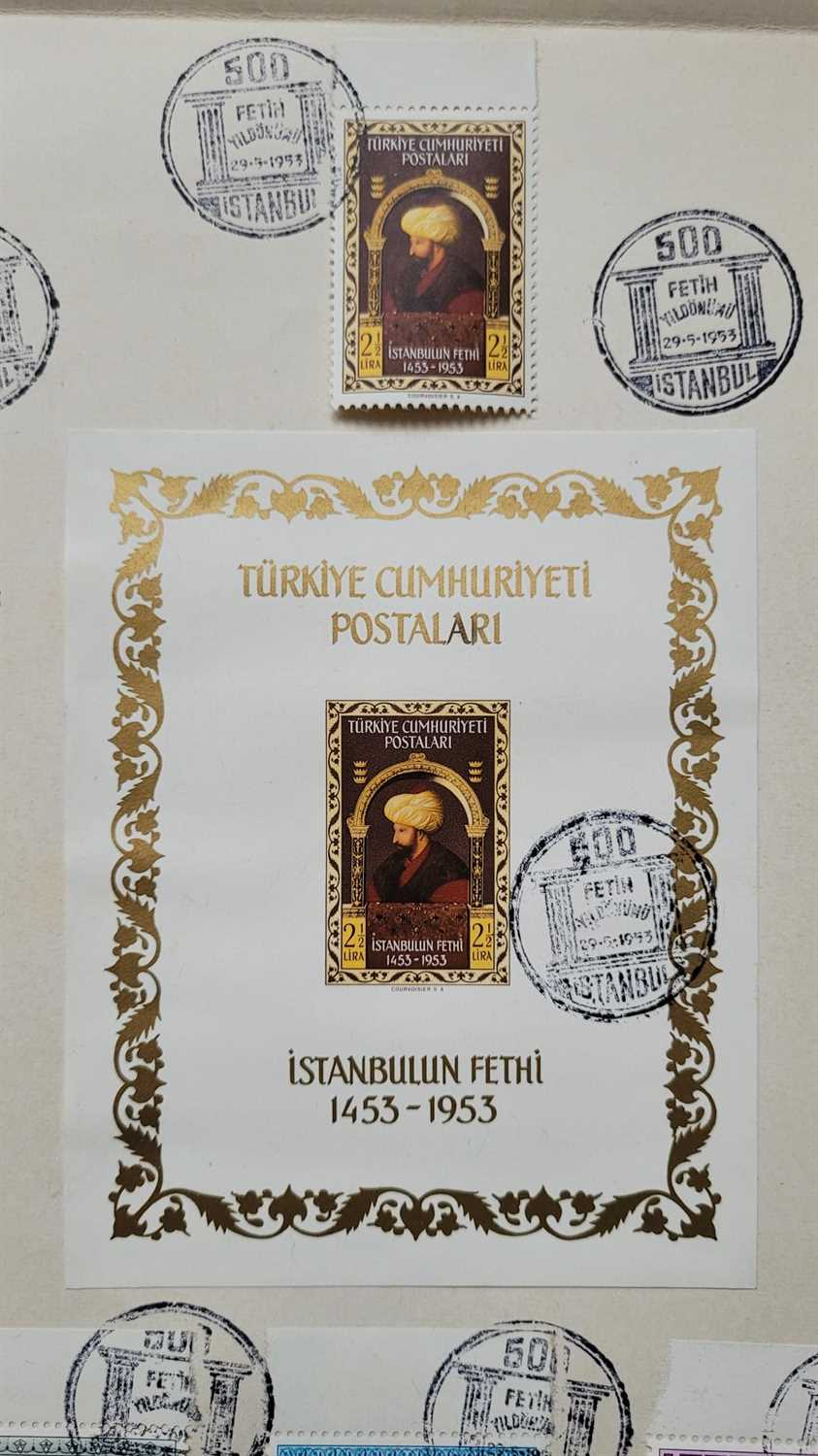1953 İSTANBULUN FETHİNİN 500. YILDÖNÜMÜ HATIRA PULLARI VE BLOK PUL ÖZEL HAZIRLANMIŞ KAĞIDINDA İLK GÜN DAMGALI KATALOG: 9.750 TL