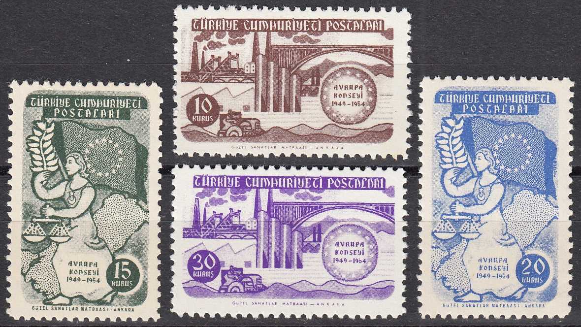 1954 AVRUPA KONSEYİNİN 5. YILDÖNÜMÜ TAM SERİ MNH KATALOG: 575 TL