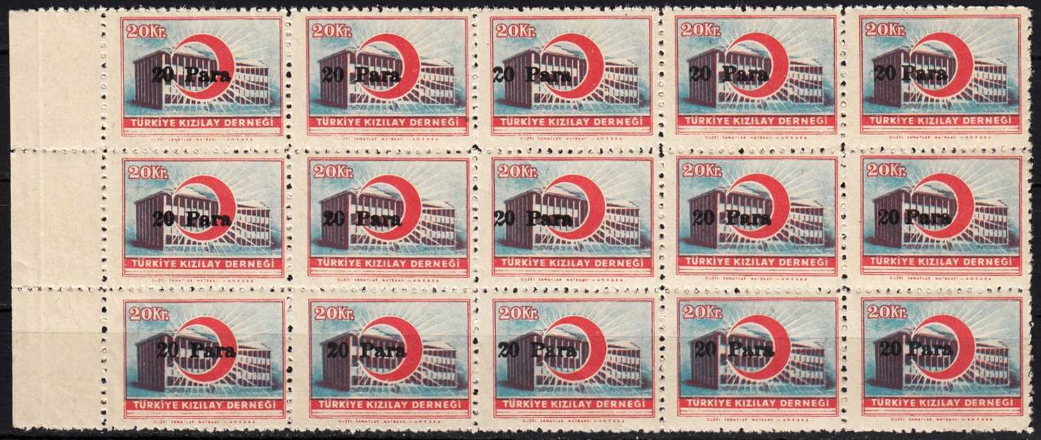 1955 20 PARA SÜRŞARJLI TÜRKİYE KIZILAY DERNEĞİ PULLARI K120 15 Lİ BLOK MNH