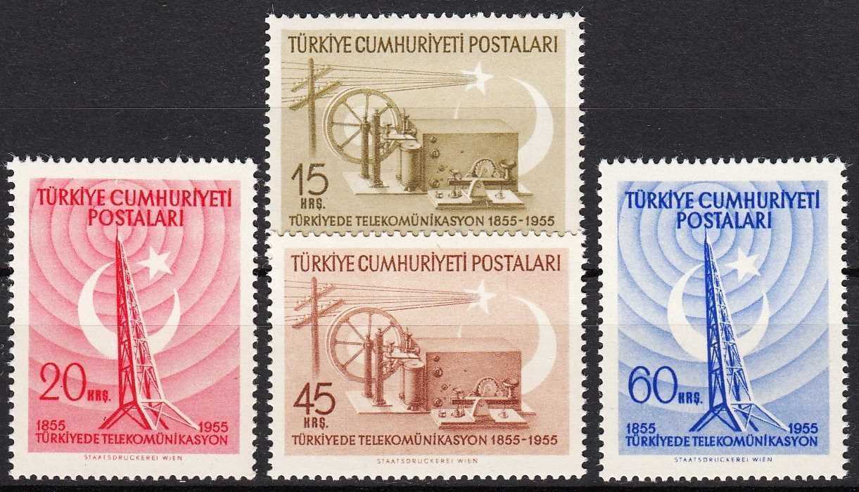1955 TÜRKİYEDE TELEKOMÜNİKASYONUN 100. YILDÖNÜMÜ TAM SERİ MNH KATALOG: 90 TL