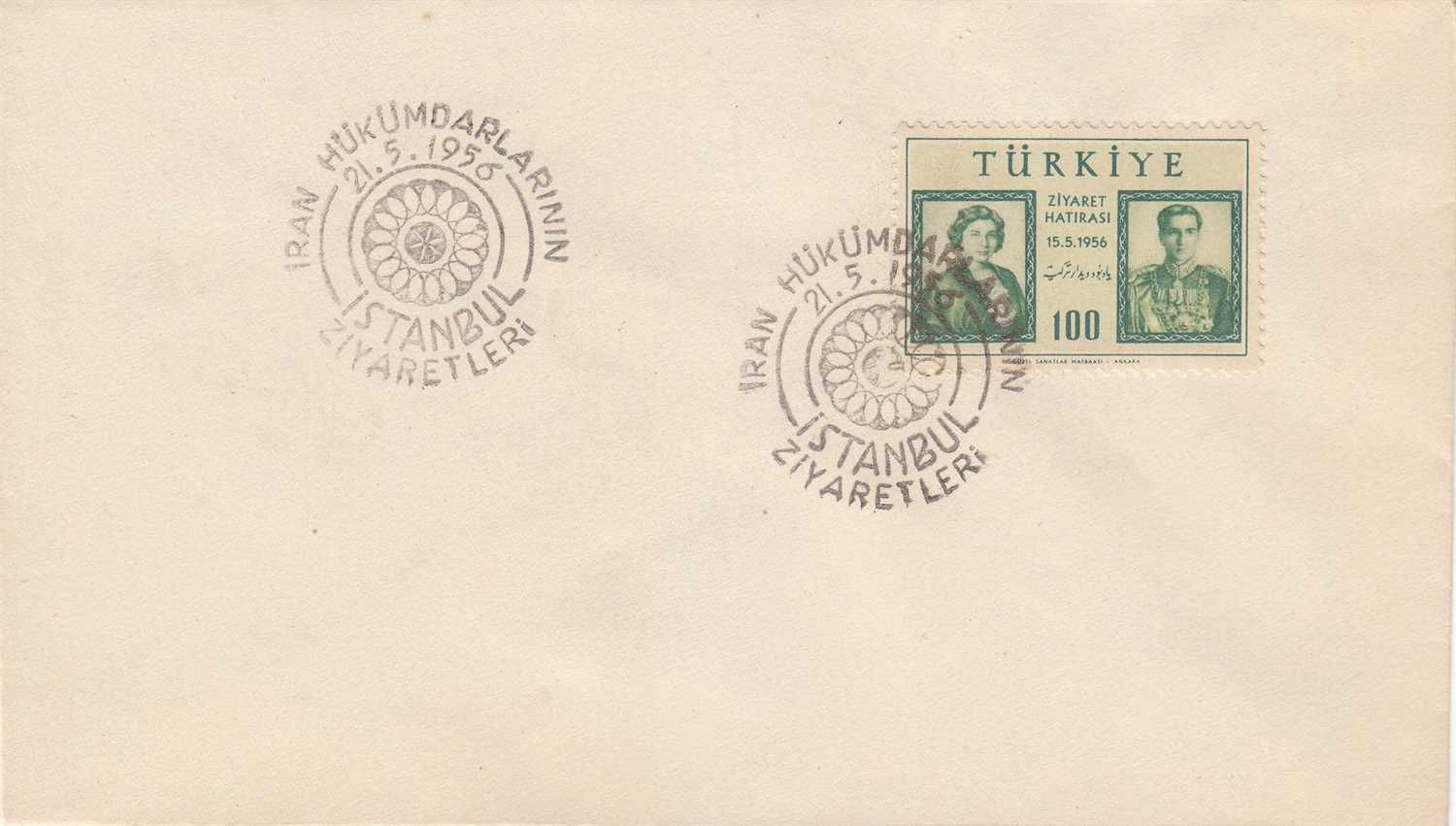 1956 İRAN HÜKÜMDARLARININ TÜRKİYEYİ ZİYARETLERİ İSTANBUL DAMGALI YEŞİL 100 KURUŞ