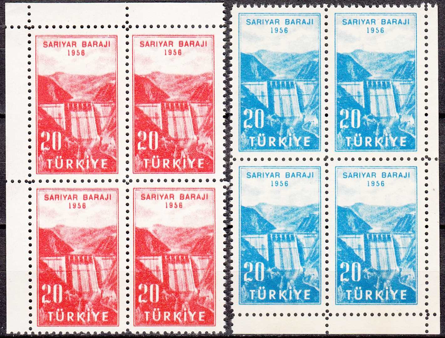 1956 SARIYAR BARAJININ AÇILIŞI TAM SERİ DBL KÖŞE BLOK MNH